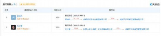 天眼查APP显示,成都天然呆餐饮管理有限公司成立于2020年8月,旗下的“天然呆奶茶”是携手关晓彤创立的新茶饮品牌。关晓彤的父亲关少曾间接持有该公司35%股份。