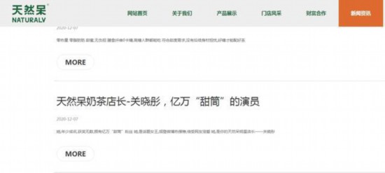 在天然呆奶茶官网上,关晓彤的称呼是“天然呆奶茶店长”。