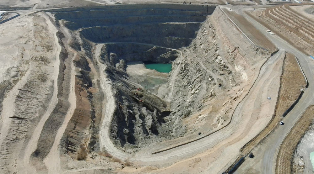 生金矿业公司公忽洞铁矿深达97米的越界采坑(无人机照片)。新华社记者 恩浩 2022年3月27日摄