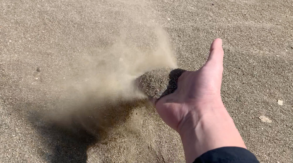 在乌拉特前旗巴音温都尔嘎查,一处已生态修复的矿区几乎看不到植被。阳光下闪着金属光泽的沙粒在记者手中随风飘扬。新华社记者 王靖 摄