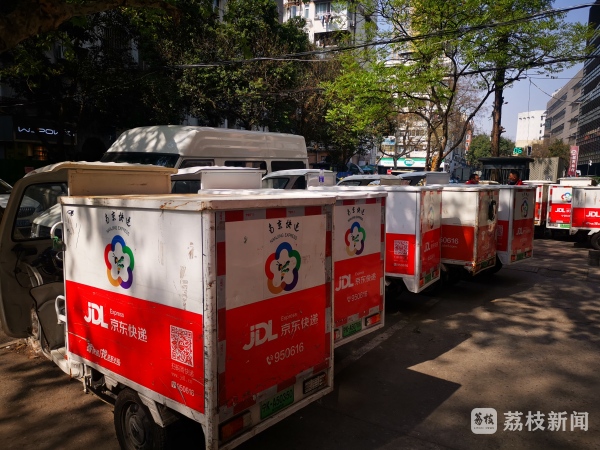 4月7日上午,南京市玄武区新街口街道城管执法人员对多家快递点进行了现场检查。执法人员表示,在快递处理场所方面,他们要求各快递点,要保持经常通风,每天定时全面消毒。从业人员要加强个人防护,完成核酸检测以及疫苗接种。
