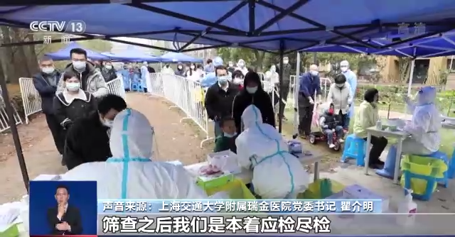 上海交通大学附属瑞金医院党委书记 瞿介明:从4月1日开始的第一轮当中,如果小区当中,楼宇里面有阳性的病人,阳性的感染者,我们第一时间把他应收尽收。第一时间把传播源转移,之后我们还要进行新一轮的核酸筛查,把可能还存在的隐性感染者第一时间筛查出来。五天当中这个区域,这个小区没有发现阳性,那么我们再用抗原检测,如果抗原阳性,我们马上紧接着做单管的核酸确认。用这样一个方法,最大程度、最有效地把隐性感染者能够筛查出来,为全市最快速度的清零起一个加强效果。