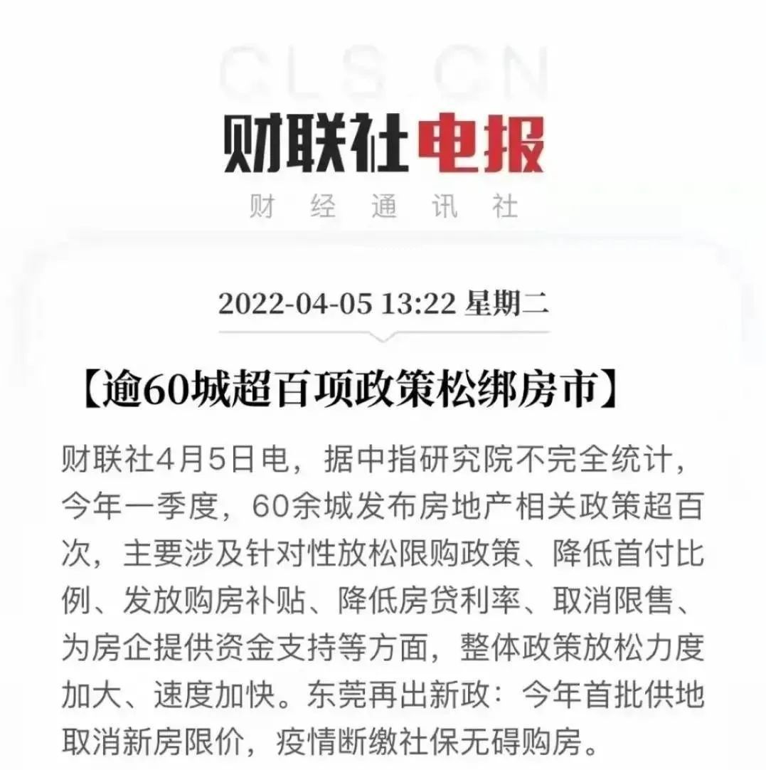截止到4月5日,2022年全国已有超60个城市出台楼市松绑政策,政策内容主要涉及放松限购、降首付比例,降房贷利率、公积金贷款优惠、购房补贴、房企资金支持等。从补贴类鼓励性政策到对“五限”政策的逐步松绑,房地产调控已进入新阶段。