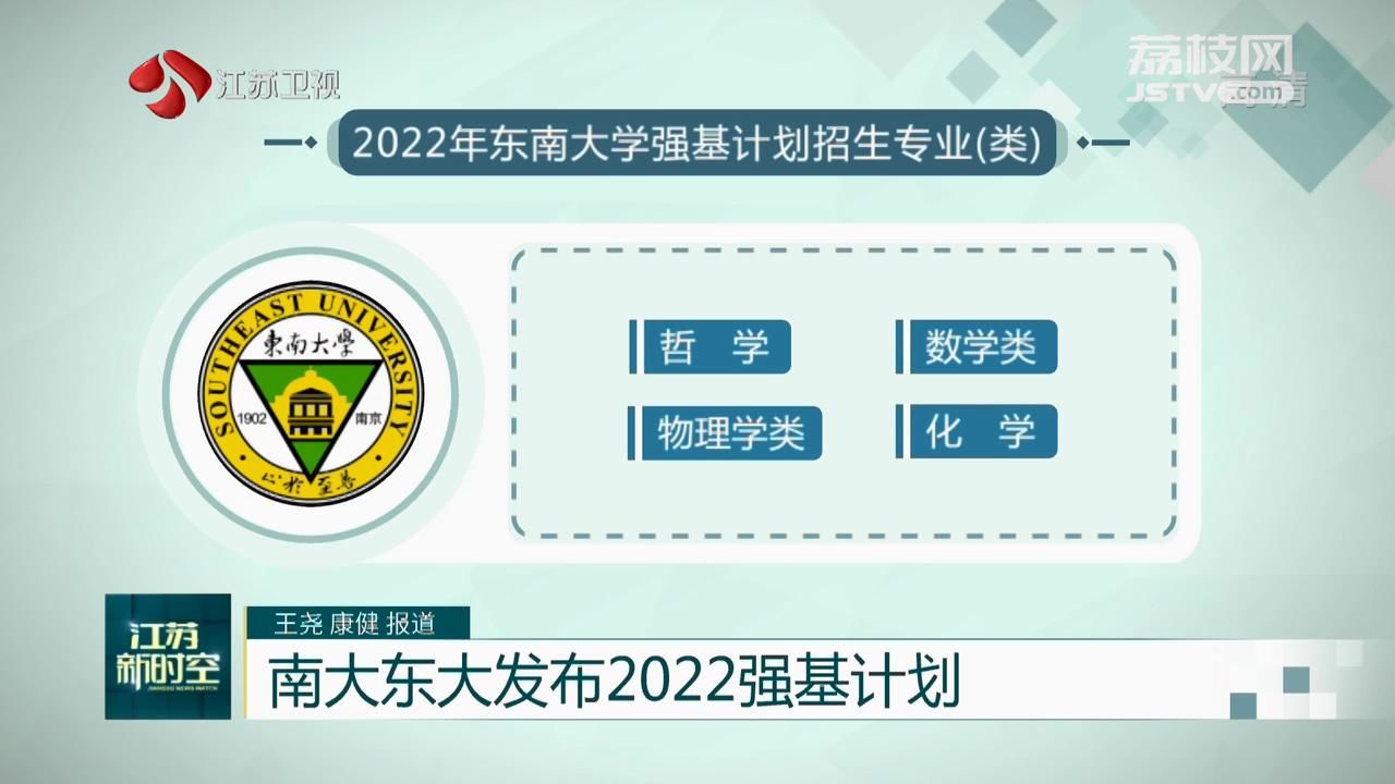 今年东南大学强基计划招生专业(类)有4个,其中,哲学专业对江苏考生要求首选科目为物理或历史,其他专业均要求首选科目为物理。