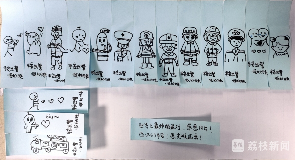 消防员赶过去发现,只见一排单独包装的小袋子,每杯酸奶盒子上画上了动漫卡通消防员人像,还写上了暖心祝福,多才多艺的小姐姐很是细心,为了让消防员安心饮用,并附上了自己的双码(行程码、苏康码)和核酸报告单。