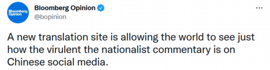 随后文章话锋一转,幸灾乐祸提到从前阅读中国网友评论有语言障碍,现在由于一些翻译账号的出现,“让世界看到了‘民族主义’评论在中国社交媒体上的恶毒程度”。遮遮掩掩、绕来绕去,终于还是暴露主题,此文想说的,不过还是所谓“大翻译运动”那套。