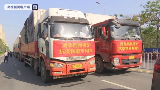 4月8日上午,湖北荆州向上海捐赠的防疫物资和生活物资发车,10辆满载荆州人民深情厚谊的大货车奔向千里之外的上海,传递共同战“疫”的信心。