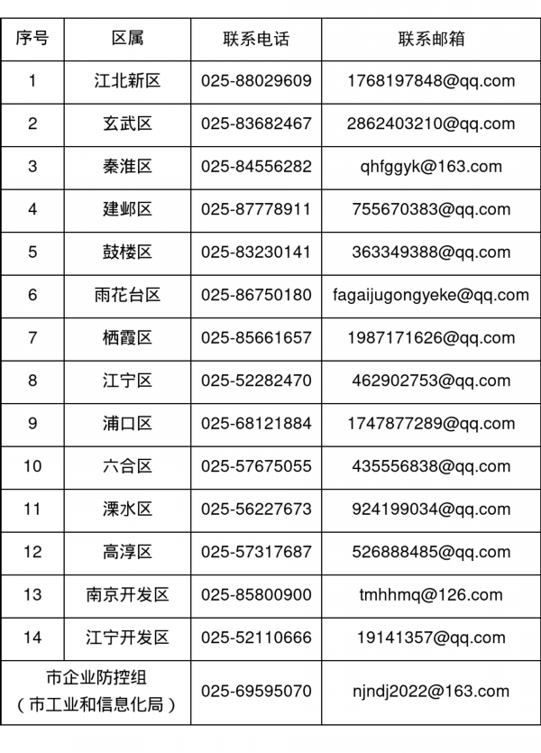 联系电话:市工业和信息化局,各区企业防控组(见附表1)