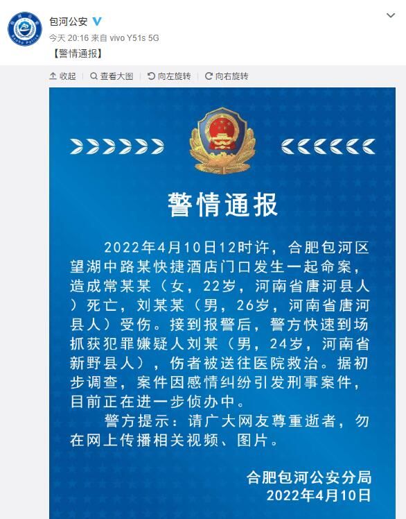荔枝新闻讯 4月10日晚,@包河公安 微博发布一则“警情通报”。全文如下: