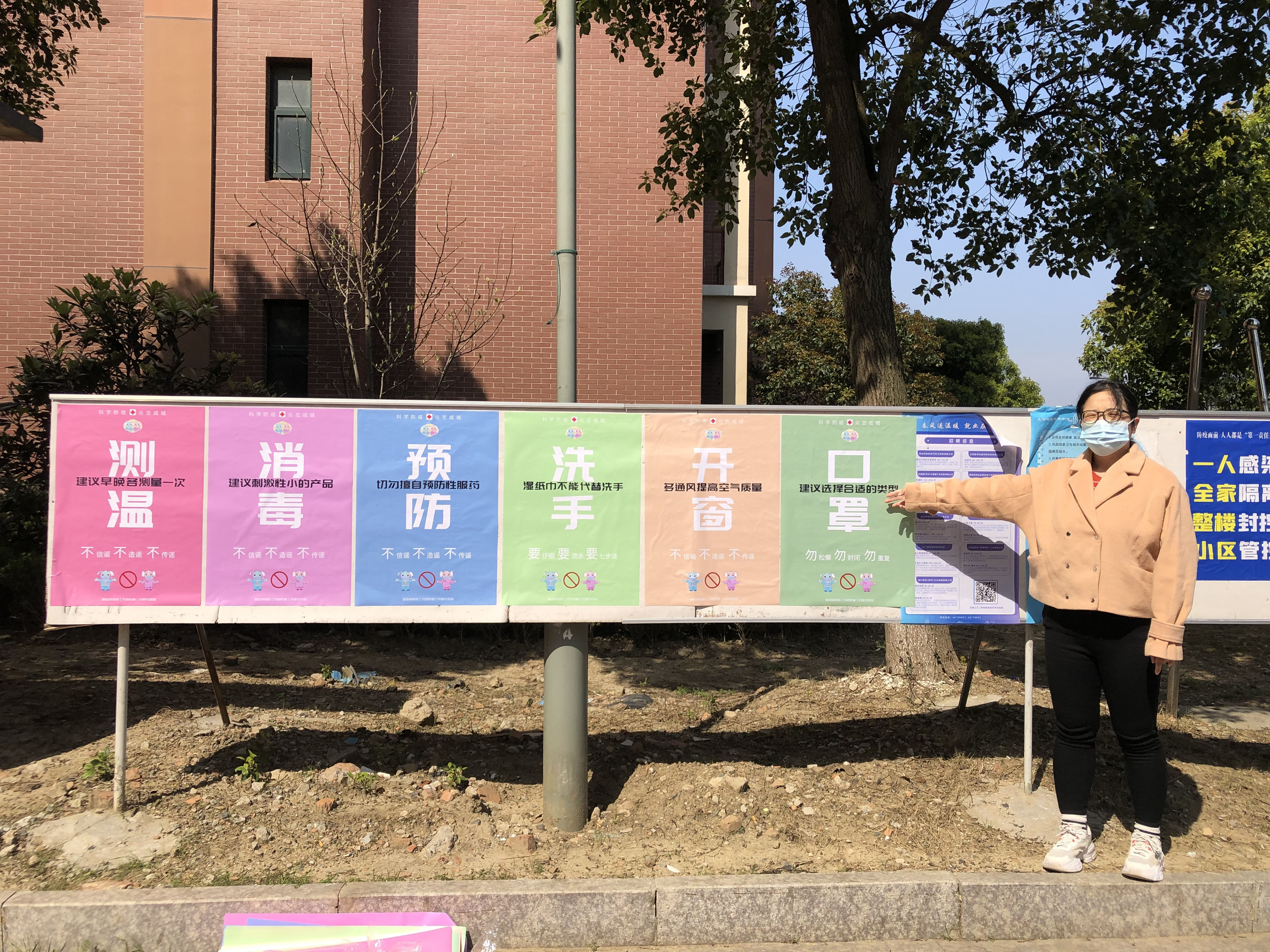 此外,为扩大宣传力度,增加宣传覆盖面,宣传活动在小区张贴防疫海报。防疫海报从“口罩”“开窗”“洗手”“预防”“消毒”“测温”六个不同主题,通过营造科学防疫的知识氛围,让年轻人带动老年人、让一个人带动一个家庭,从而实现全域科学佩戴口罩和防疫。