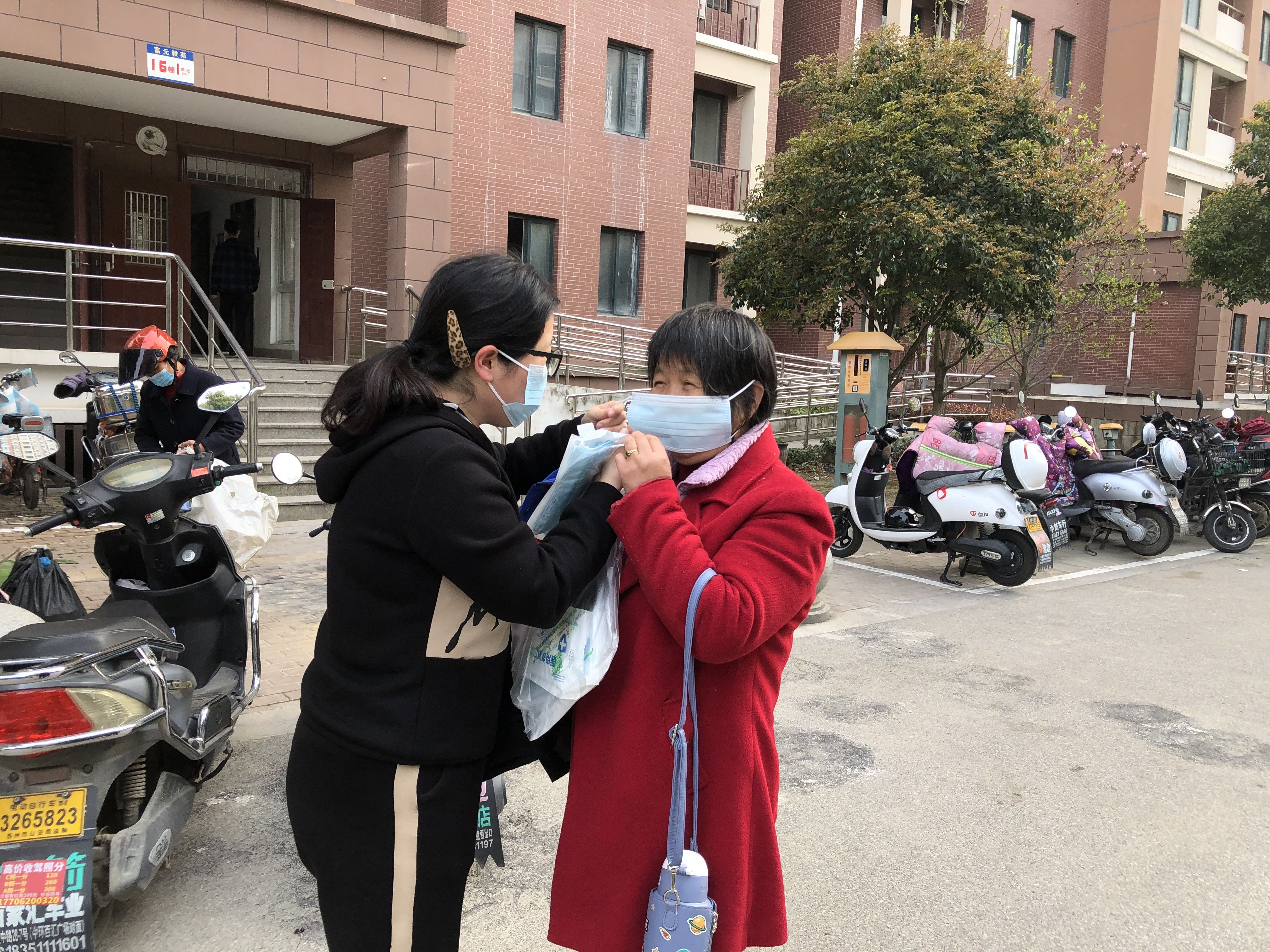 活动现场,志愿者一边对小区内来往的老年人进行防疫科普宣传,一边为没有佩戴口罩和口罩受损严重的老人们赠送口罩。“张老伯,口罩要正确佩戴,充分覆盖口鼻等部位。”“罗好婆,这个口罩已经很旧了,没有防护作用了,给您换个新的”。