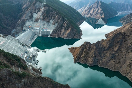 这是2022年3月17日拍摄的雅砻江两河口水电站。