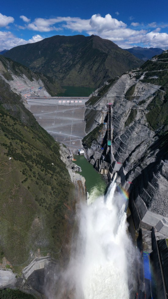 这是2021年9月23日拍摄的正在泄洪的雅砻江两河口水电站。