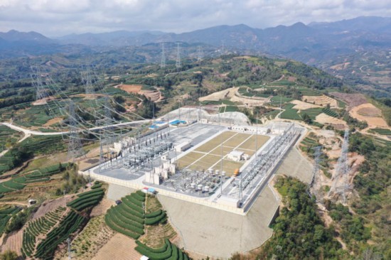 3月11日拍摄的福建棠园(福鼎)500千伏输变电工程项目现场。