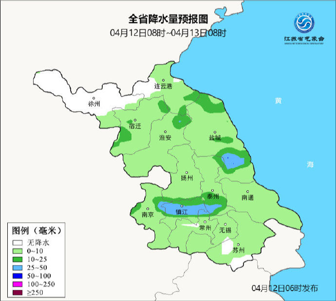 累计雨量:沿江和苏南地区35~80毫米,江淮之间中北部地区15~40毫米,淮北地区10毫米以下。具体预报如下: