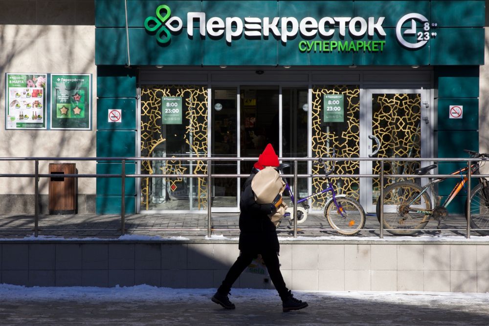 3月9日,在俄罗斯首都莫斯科,市民从一家超市前走过。俄罗斯总统普京8日签署法令,对制裁条件下的国民和企业给予支持。新华社记者白雪骐摄