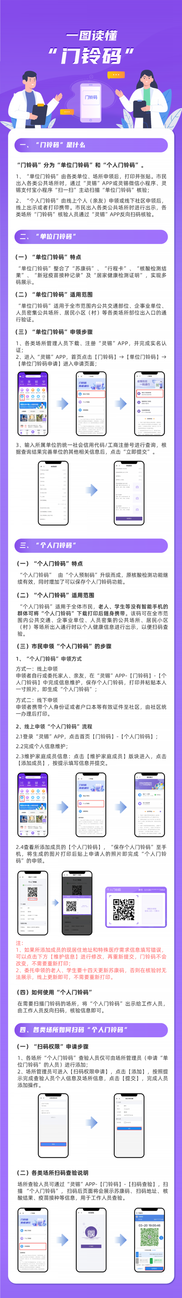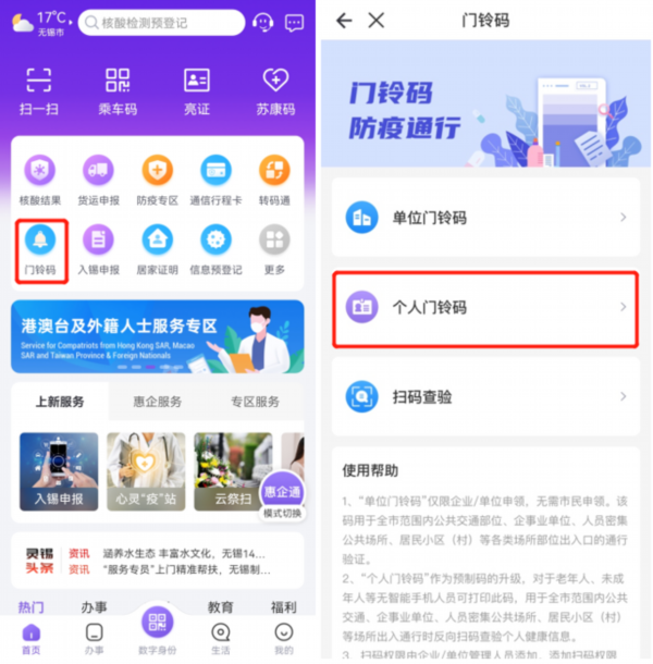 目前,“门铃码”已成为市民日常出行、工作生活必备的工具,为进一步保障老人、小孩、学生等没有智能手机群体的便利出行,无锡市疫情防控指挥部办公室会同市公安局、市大数据管理局,将原“灵锡预制码”升级为“个人门铃码”,通过反向扫码实现“门铃码”应用人群全覆盖。