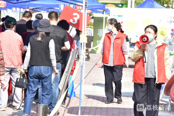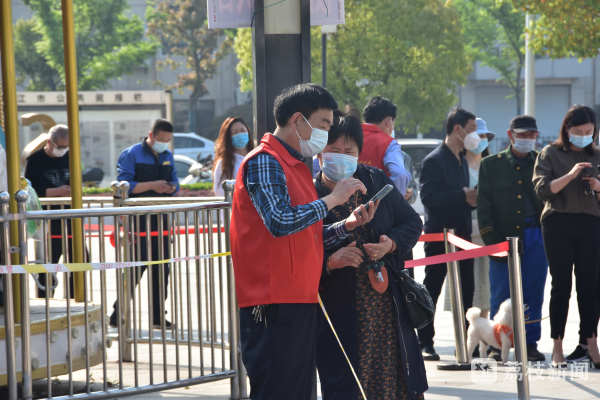 “请打开行程码、健康码,保持一米距离。”4月12日上午,在镇江高新区悦然广场核酸检测点,喊话器的喇叭中反复不停地播放着一段女声。