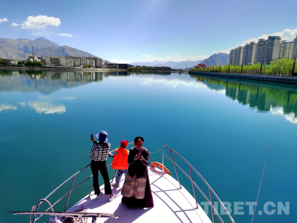 “我是被闺蜜推荐到这里坐船。船上我能仰望古老的建筑布达拉宫,也能看到柳梧万达、柳梧桥等各种现代建筑。我感觉传统建筑与现代建筑融合在一起的拉萨很美,很不一样。”市民琼拉说。
