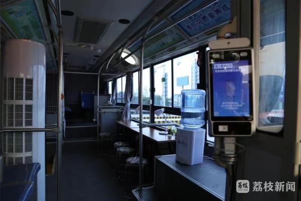 记者在查验点看到,多功能服务保障车由一辆10米长的公交车改造而成。据了解,全车部署了移动5G网络,装有5G热成像防疫设备,通过该设备可以进行体温检测,也可以通过身份证或苏康码进行实时识别。