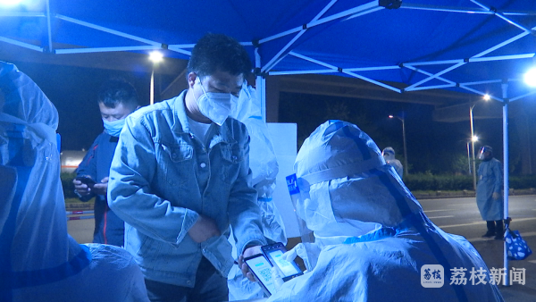 南京市栖霞街道城管科协管队员、查验组成员董年佶 介绍:“货车司机过来以后,我们会看他的行程码,如果有除南京市以外的城市的话,我们就会给他发蓝色的单子,然后进行核酸检测。重点的涉疫地区的话,我们会给他发红色的单子,红色的单子就是做核酸加抗原(检测)。”