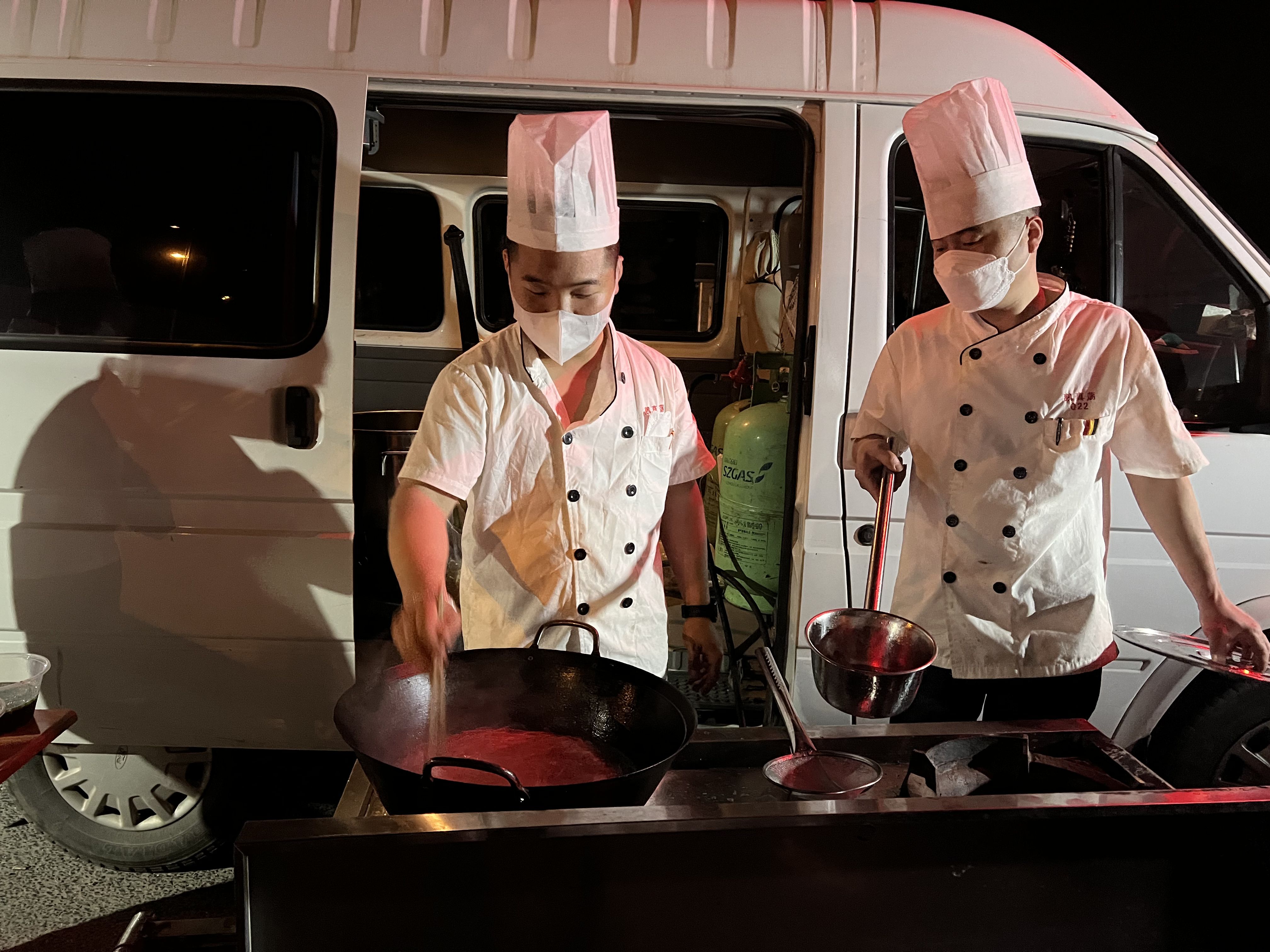 每天晚上8点,顾建国与员工开始炒制晚上的浇头,10点带着便携炉灶和备好的高汤到达查验点为工作人员煮面,一直到12点才收摊回家。