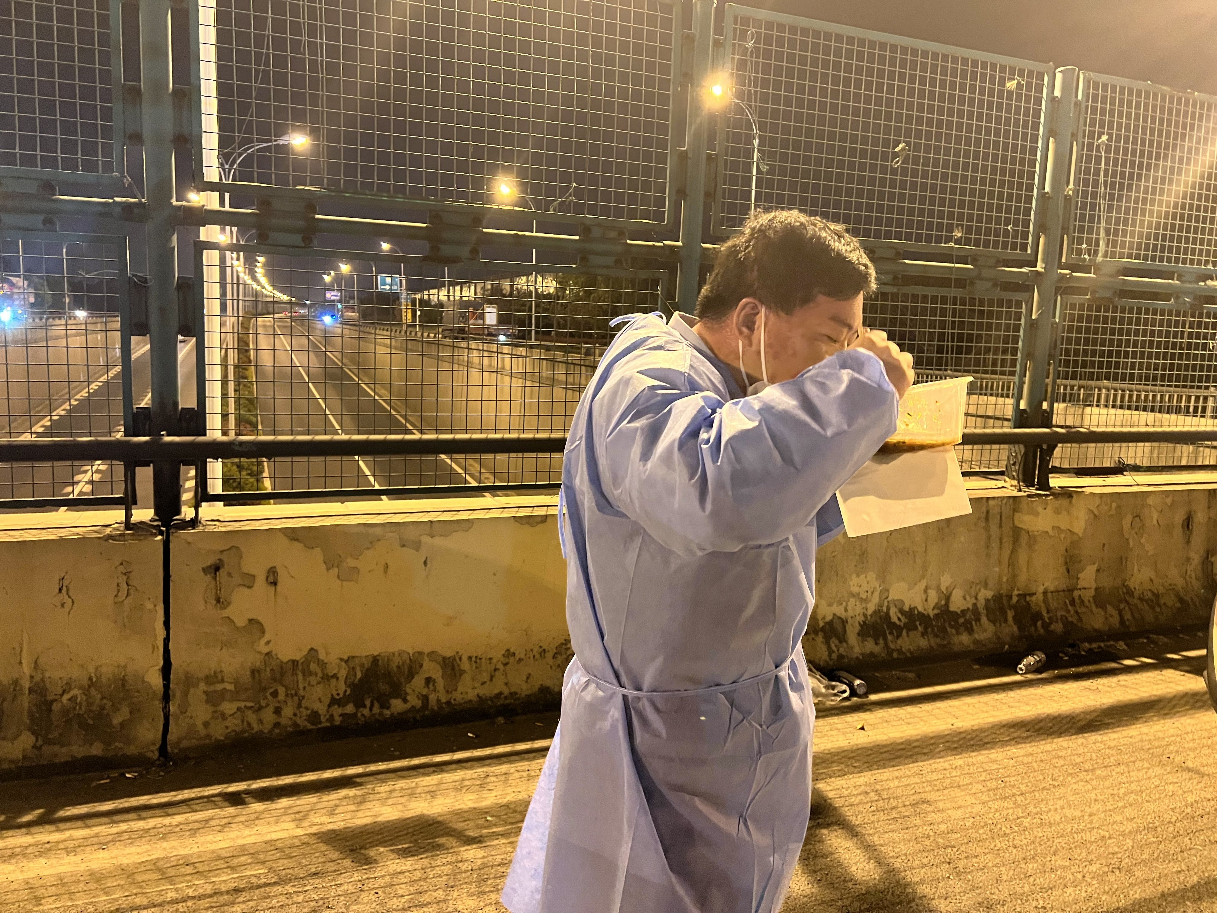 “查验点工作人员晚上都没什么吃的,我本来有家面馆,现在也歇业了,想着到现场给他们下个面,让他们吃点热的。”顾建国说。
