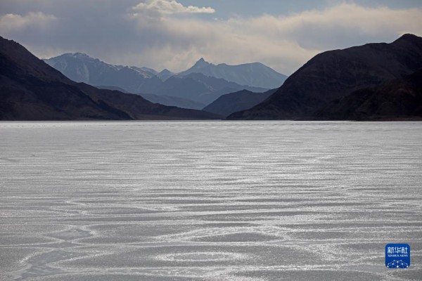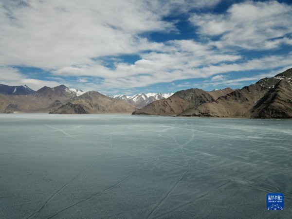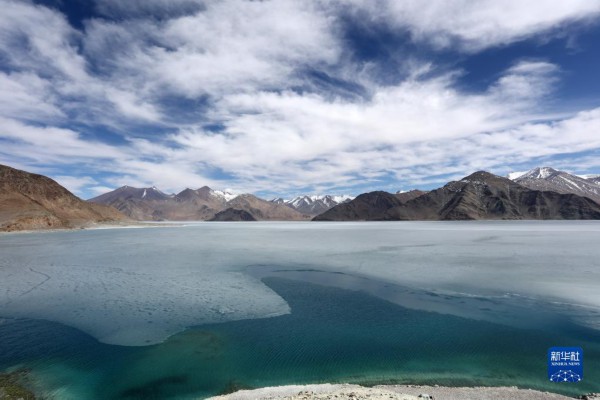 这是4月9日拍摄的班公湖冰面。由于湖体狭长,部分湖面仍未解冻。新华社记者 姜帆 摄