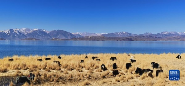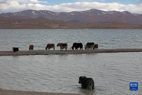 这是4月8日拍摄的班公湖景色(手机照片)。新华社记者 沈虹冰 摄