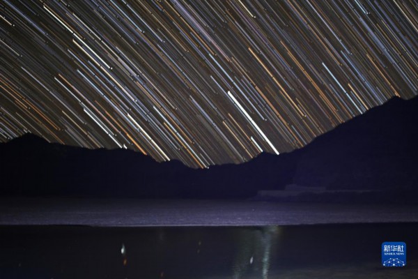 这是4月6日在班公湖畔拍摄的星轨(合成照片)。新华社记者 姜帆 摄