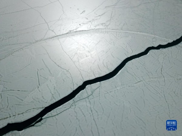 这是4月5日拍摄的班公湖冰面(无人机照片)。由于湖体狭长,部分湖面仍未解冻。新华社记者 姜帆 摄