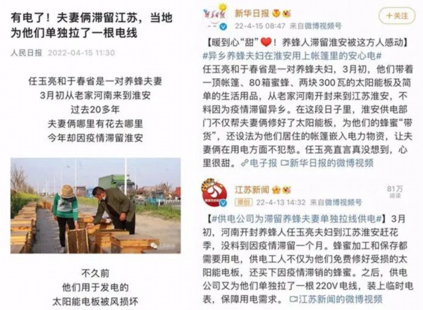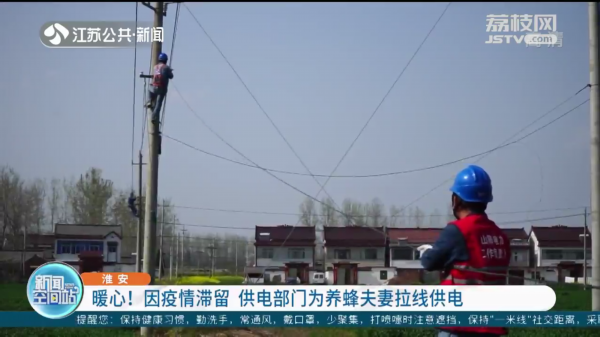 近日,人民日报、江苏广电总台等多家主流媒体纷纷报道国网淮安供电公司为滞留淮安的养蜂人供暖心服务的故事。
