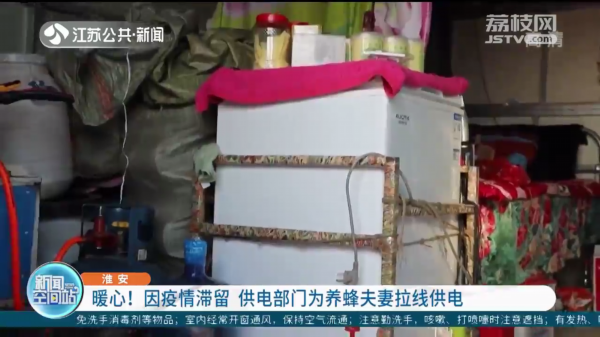 淮安供电公司了解到这一情况后,迅速开通绿色通道,决定在特殊时期帮助这对养蜂夫妻度过难关。通过实地调研,供电部门从任玉亮夫妻帐篷后面的村庄接电,为他们夫妻俩单独拉一根电线,安装上临时电表,直接输送到帐篷内,让他们能用上220伏的电源,解决他们的用电困境。“真没有想到,特别感谢。我养蜂20多年,今年头一次遇到这么好的事情,淮安市供电公司把我的用电问题解决了。”任玉亮很激动。
