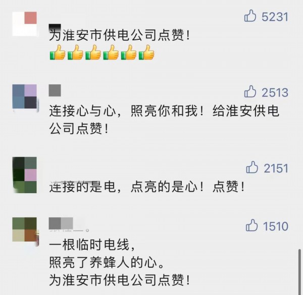 网友们也纷纷为国网淮安供电公司点赞