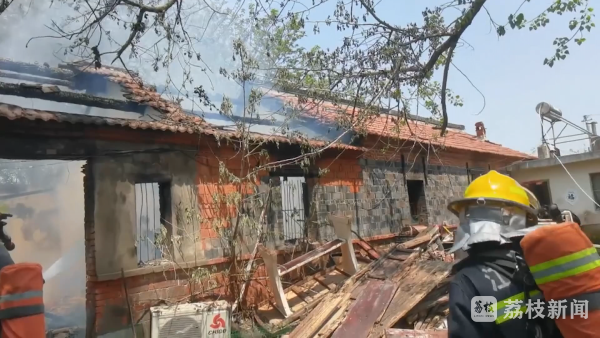 4月11日中午,扬州市江都区邵伯镇一户人家突然起火,屋顶瓦片坍塌掉落,室内一片黑烟弥漫。起火点是东边卧室,火势很快蔓延到西侧房屋。消防人员赶到现场后,迅速处置,半个小时左右,两个房间的明火被全部扑灭。