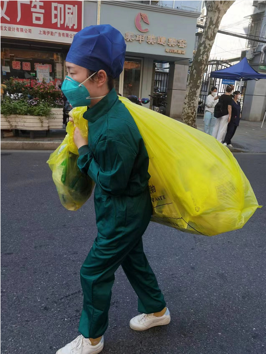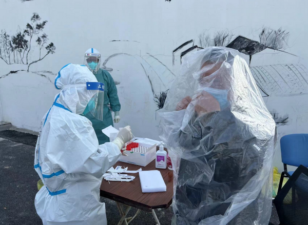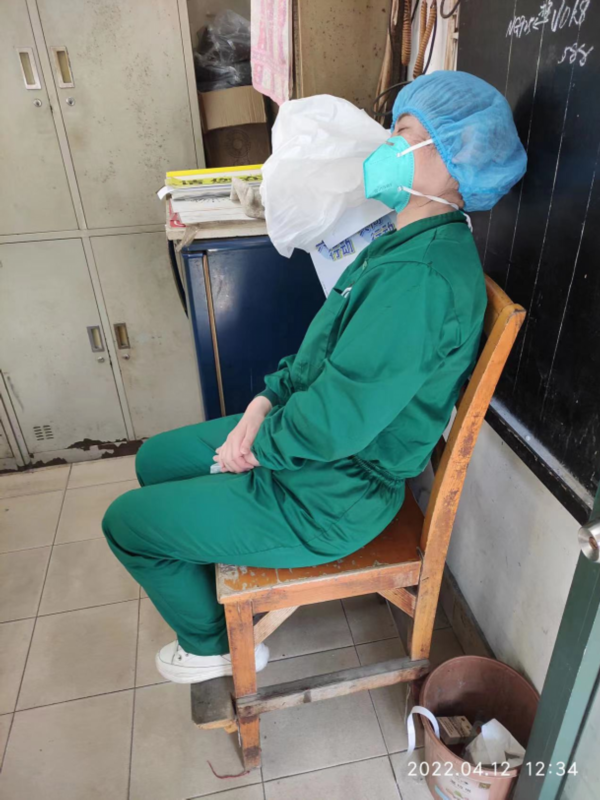 4月13日,上海大雨。因为工作安排,下午没有到社区采样的王姗看了一眼手机,工作群里发来几条一线同事感叹气温太低的信息,接着看到社区干部及时送来雨衣的消息。而在4月12日,上海最高温度超过30摄氏度,王姗和同事防护服里的衣服,几乎都被汗水浸透。