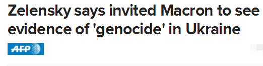 在美国总统拜登以“种族灭绝”指责俄罗斯在乌克兰的军事行动后,法国总统马克龙避免使用“种族灭绝”一词,认为最好“谨慎对待”“种族灭绝”这样的话术。法新社称,泽连斯基认为,马克龙之所以避免使用“种族灭绝”一词,是因为他认为这将损害他和俄罗斯进行外交接触的机会。