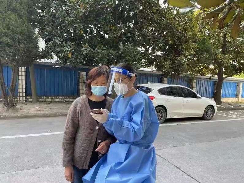 此时的王珂就像一名救火队长,哪里缺人就扑向哪里,“新光社区、醒狮社区、小北门社区、二井眼社区”,多的情况下,一天甚至要辗转4、5个检测点。即使清明假期,王珂也依然坚守在志愿者岗位,每天早上6点就到达社区准备,为的是半小时之后能够准时开展检测工作。有的社区异地人员和老年居民的比重较高,防疫任务繁重,工作内容不仅包括验证身份信息,维持队伍秩序,发放检测证明,还要随时解答市民疑问、安抚他们情绪。仅仅一上午王珂就协助了六七百名小区居民完成了核酸检测。