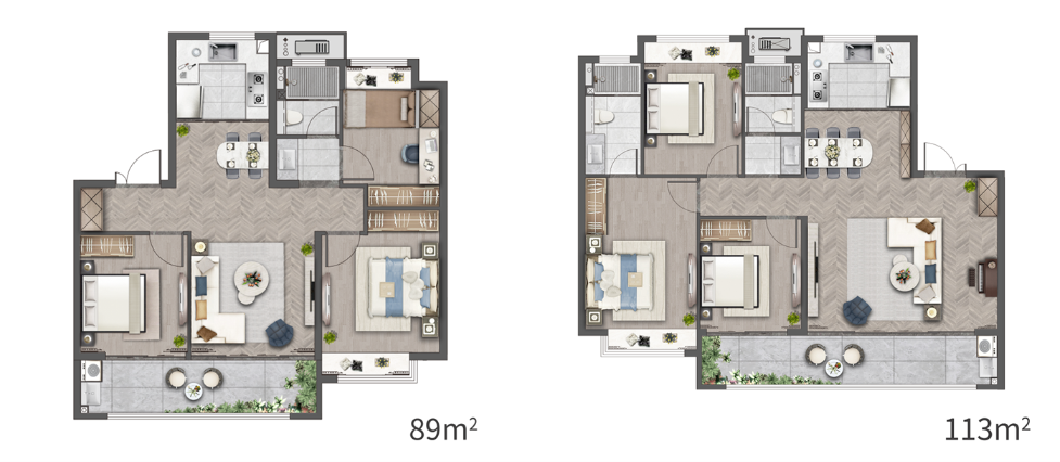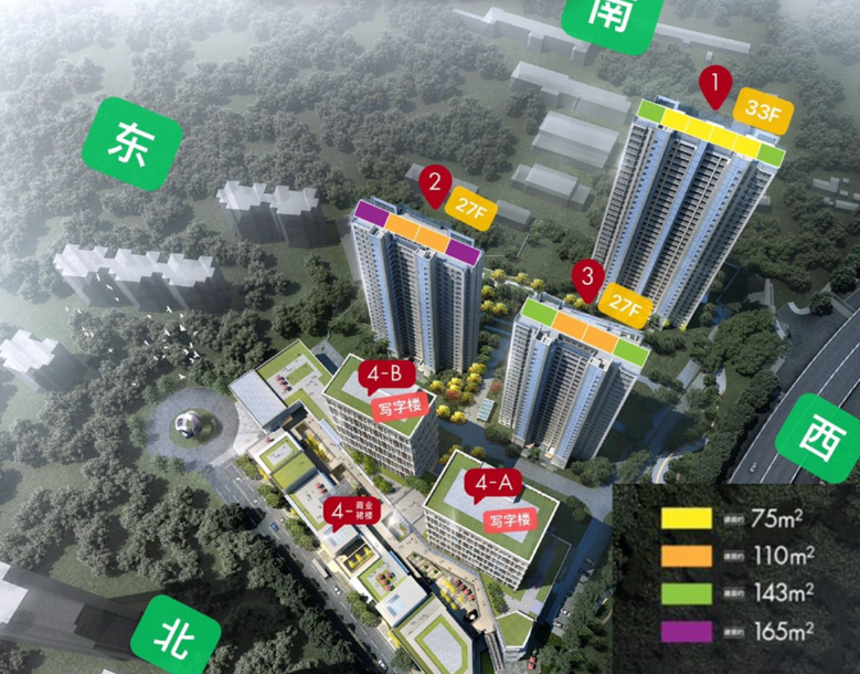 根据规划,项目拟建11栋31-33F高层、1栋21F租赁住房、2栋低层商业及配套用房,户型建面约89-128㎡。