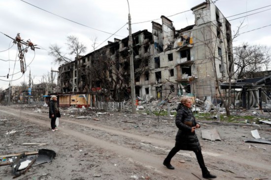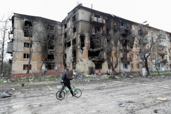 当地时间2022年4月18日,乌克兰马里乌波尔,俄乌冲突持续,房屋受损严重。