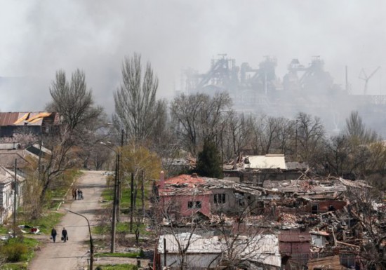 当地时间2022年4月18日,乌克兰马里乌波尔,亚速钢铁厂附近听到爆炸声。