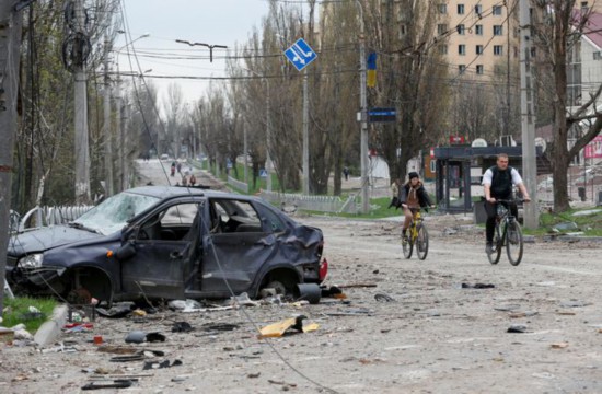 当地时间2022年4月18日,乌克兰马里乌波尔,当地居民。