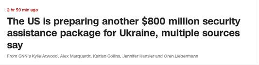 就在一周前(4月13日),美国总统拜登批准向乌克兰提供价值8亿美元的额外军事援助,包括火炮和直升机等军备。CNN说,如果这项最新的8亿美元援助计划获得批准,将意味着自2月24日俄对乌开展军事行动以来,美国已承诺向乌克兰提供约34亿美元的援助。