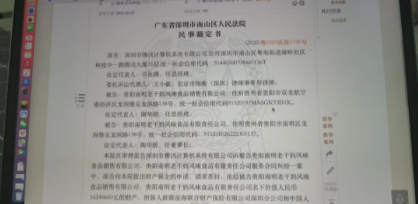 2020年6月29日,深圳南山区法院在裁判文书网公布腾讯公司起诉冻结老干妈公司1600万元财产,由此牵出诈骗案。
