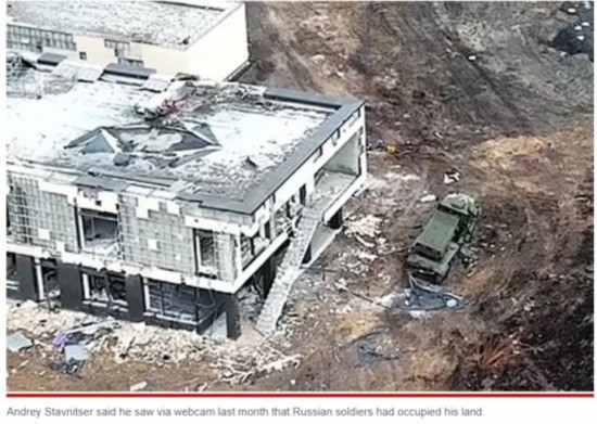 乌克兰IT公司TransInvestService的首席执行官安德里·斯塔夫尼策说,他上个月通过网络摄像头看到,俄罗斯士兵占领了他的这处房产,还携带了十几件军事装备。