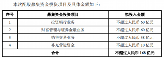 公开资料显示,东方证券本次配股募集资金168亿元的规模仅次于中信证券刚完成的273亿的配股募资,募集资金主要投入投资银行、财富管理与证券金融等业务。