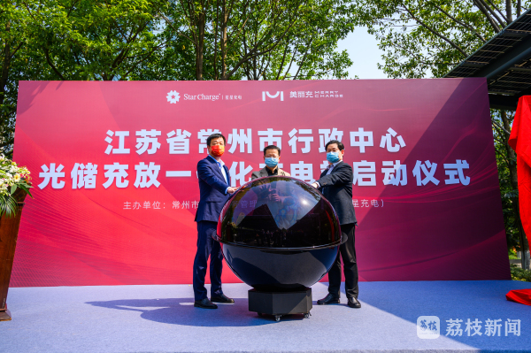 4月20日,常州市公共机构首个光储充放一体化充电站在常州市行政中心新能源汽车停车场正式投入使用。