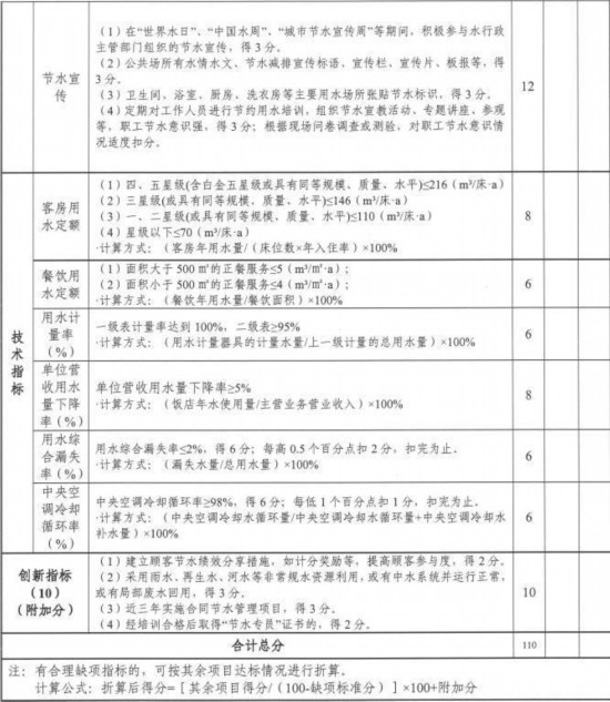宾馆酒店是用水大户,在其经营过程中如何来贯彻节约用水的理念、设立节水设施、规范用水行为,市水务局和市文广旅局联合推出了宾馆行业节水载体评价标准,涵盖了管理、技术、创新三大项考核指标,满分110分。苏州市节水办监督管理科科长苏海波介绍:“针对各个级别的宾馆,有一个固定用水的定额,比如四星、五星的宾馆,国家定额是每张床位一年用水量是216吨,如果超额,相应的分值就会扣掉,而且分值很大,基本上是一票否决。”