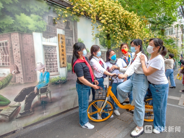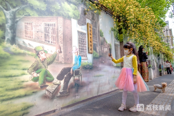 昨天(4月19日)恢复开园!南京玄武区碑亭巷的墙绘和木香花成网红打卡点,吸引了市民前来打卡。