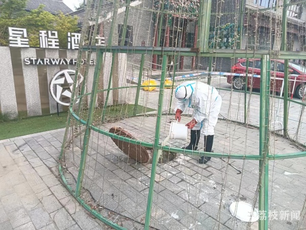 2022年4月19日上午7点,在淮安区河下古镇星程酒店,防护服、防护面罩、医用口罩、医用手套等一系列防护装备穿戴整齐后,逆行而上的环卫“大白”——淮安区环卫处公厕管理所所长高正祥开始了上午城区11个隔离点的污水消杀工作。